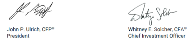 The views expressed represent the opinion of Ulrich Investment Consultants. The views are subject to change and are not intended as a forecast or guarantee of future results. This material is for informational purposes only. It does not constitute investment advice and is not intended as an endorsement of any specific investment. Stated information is derived from sources that have not been independently verified for accuracy or completeness. While Ulrich Investment Consultants believes the information to be accurate and reliable, we do not claim or have responsibility for its completeness, accuracy, or reliability. Statements of future expectations, estimates, projections, and other forward-looking statements are based on available information and Ulrich Investment Consultants’ view as of the time of these statements. Accordingly, such statements are inherently speculative as they are based on assumptions that may involve known and unknown risks and uncertainties. Actual results, performance or events may differ materially from those expressed or implied in such statements.